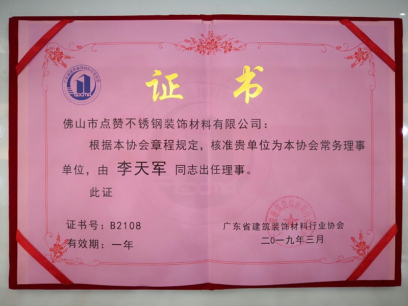 點贊裝飾榮獲廣東建筑裝飾材料行業協會常務理事